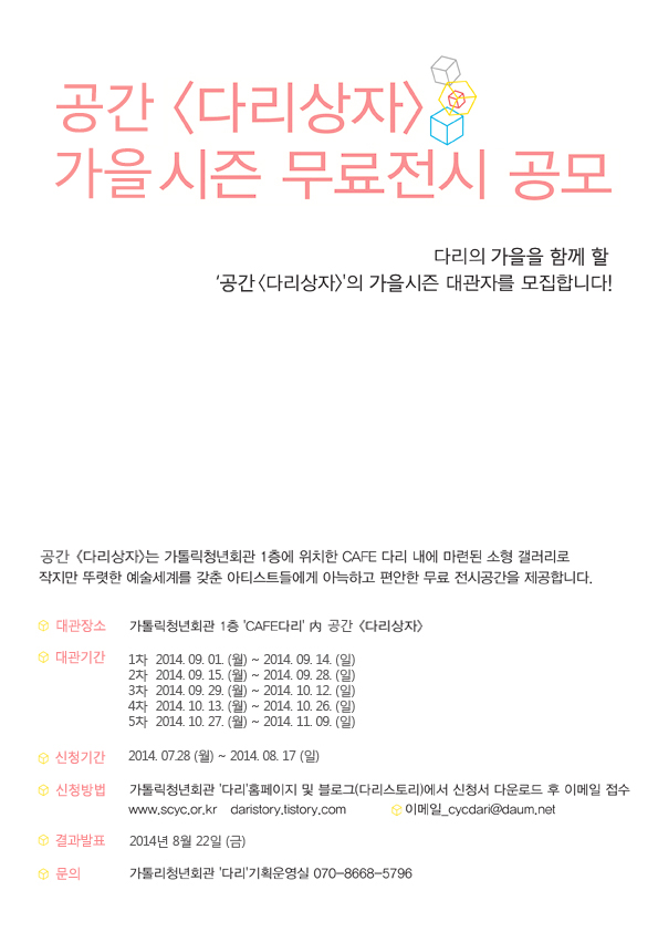 접수문의 가톨릭청년회관 다리 기획운영실 070-8668-5796
