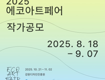 2025 에코아트페어 - 강원도 신진작가 공모● 2025 에코아트페어 - 신진작가 특별전가장 자연과 가까운 강원도에서 올 가을, 제4회 에코아트페어가 펼쳐집니다. 아트페어와 친환경이라는 방향성이 어떻게 함께 공존하며 나아갈 수 있는지 모색해보고자 하는 이번 페어는 특별…