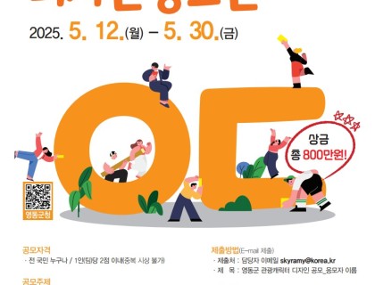 『영동군 관광 캐릭터 디자인 공모전』● 참가 자격 - 전 국민 누구나 ● 공모주제- 영동 관광의 특색을 담은 독창적,대중적 캐릭터 디자인 ● 공모일정 - 접수 기간 : 25.4.7(월) ~ 5.30(금) 18:00 까지&n…