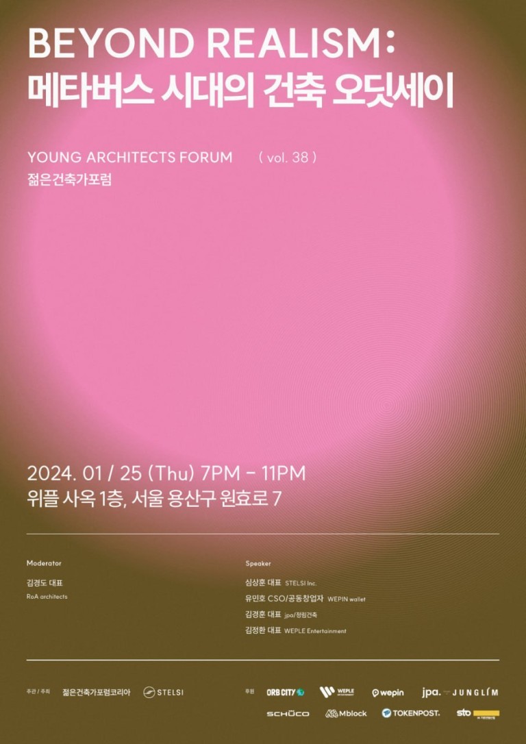 건축 메타버스 산업 스텔시 재단과 젊은 건축가포럼 단체가 위플(WIPLE) 사옥 1층에서 건축과 블록체인 기술의 융합을 도입한 메타버스에 관한 전시를 개최한다.