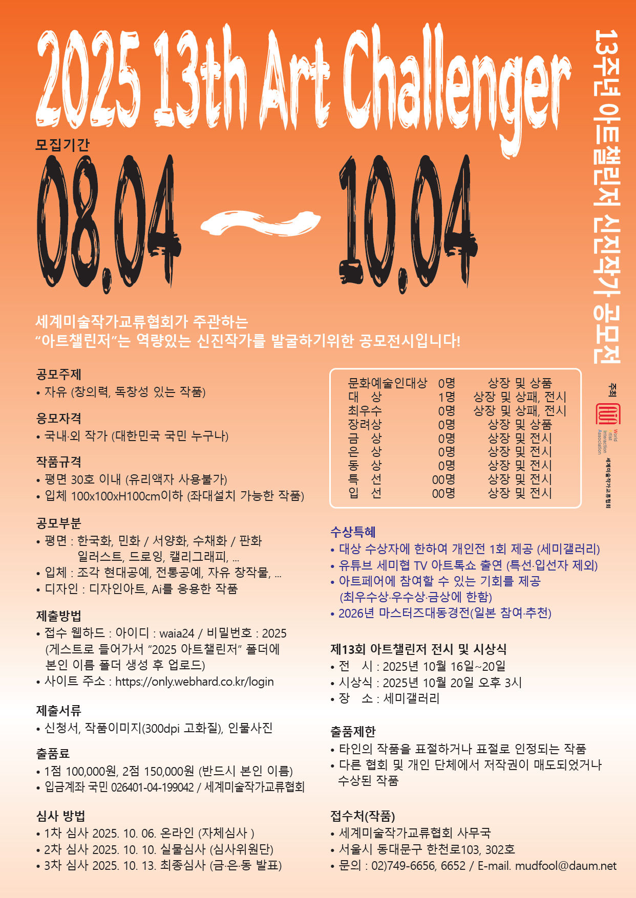 2025년 제13회 세계미술작가교류협회 공모 시작 !