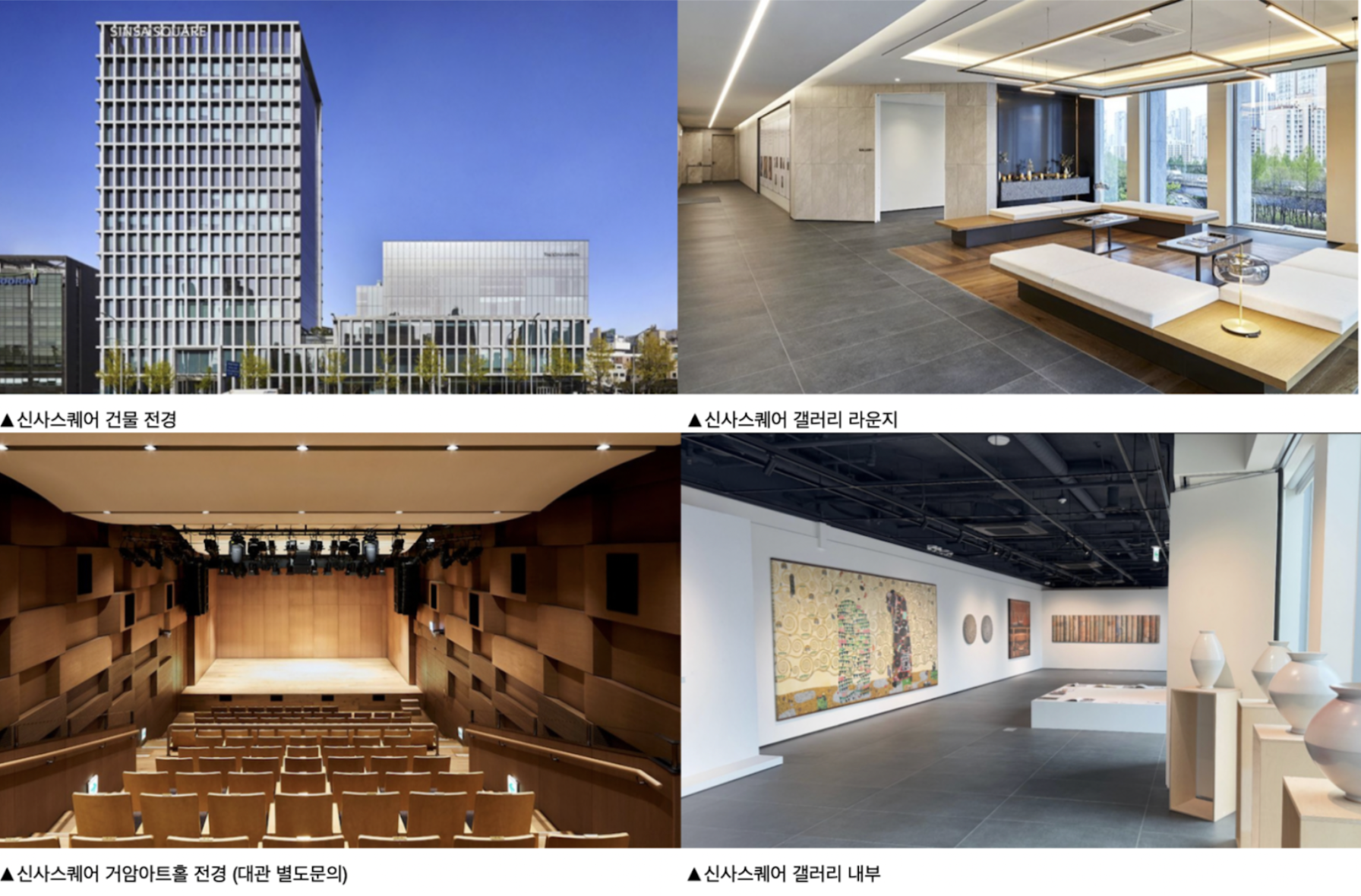 신사스퀘어는 가로수길과 청담 갤러리 벨트를 유기적으로 연결하는 강남 중심부에 위치해 한남동, 잠실, 강북 주요 지역까지 차량으로 약 10~15분 내 이동이 가능한 접근성과 입지의 문화예술 활동 허브입니다.