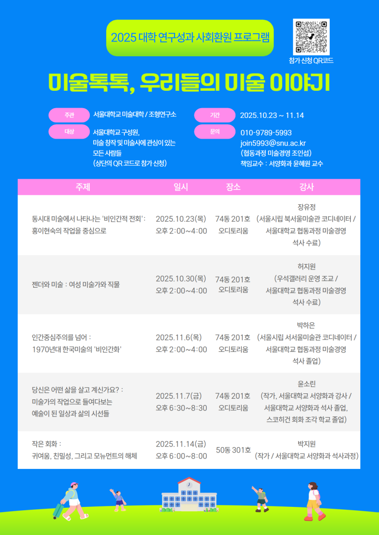 안녕하세요. 서울대학교 조형연구소에서 **‘2025 대학 연구성과 사회환원 프로그램’**의 일환으로