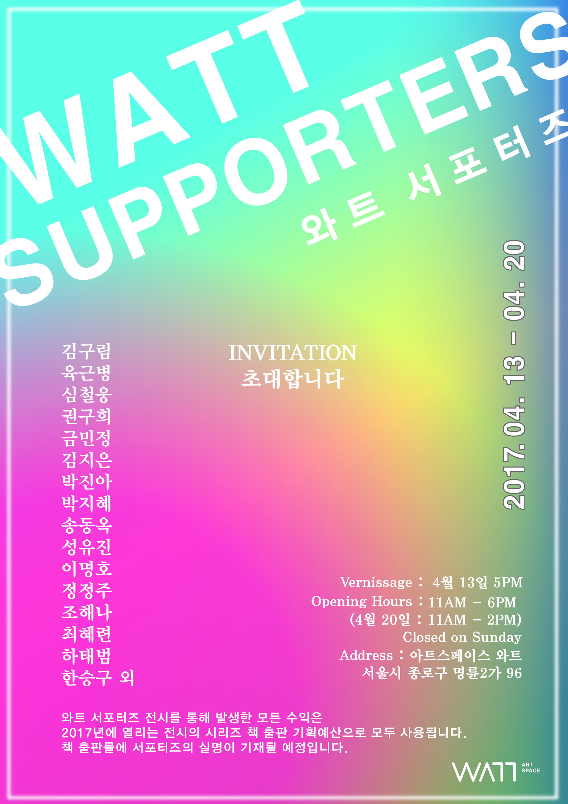 「와트 서포터스」전에서 발생한 모든 수익은 2017년에 열리는 전시의 시리즈 책 출판 기획예산으로 모두 사용됩니다.