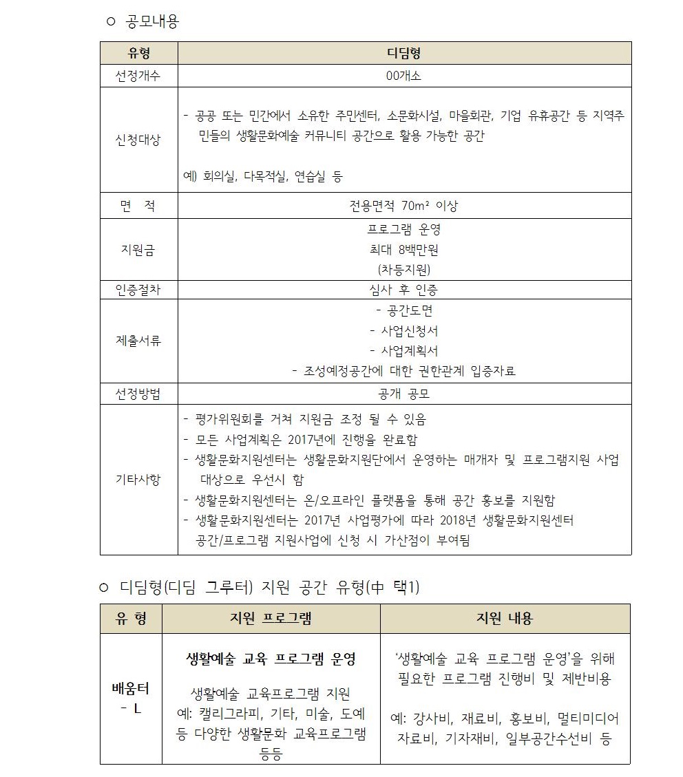 [공모]서울문화재단 생활문화지원센터 조성 사업 2차 공모 페이지 정보 작성자 이다영 조회 19,634회 작성일 17-10-11 15:29 본문 ■ 자세한 내용은 첨부파일을 참조해주시기 바랍니다. ■ 서울문화재단 링크http://www.sfac.or.kr/html/opensquare/notice.asp?SearchCategory=&SearchYear=&SearchKey=&SearchValue=&SearchStart=&SearchFinal=&perMenuSeq=6&MenuSeq=108&flag=READ&Page=2&Seq=46775 추천 0 첨부파일 생활문화지원센터 조성 사업 2차 공모.zip 56.8K • 0회 다운로드 • 2017-10-11 15:29:21 목록 이전글 [한국학중앙연구원 한국학대학원 2018년도 신입생 모집공고] 17.10.19 다음글 2017 글로벌 아트콜라보 엑스포 참가 예술인 모집 17.09.27