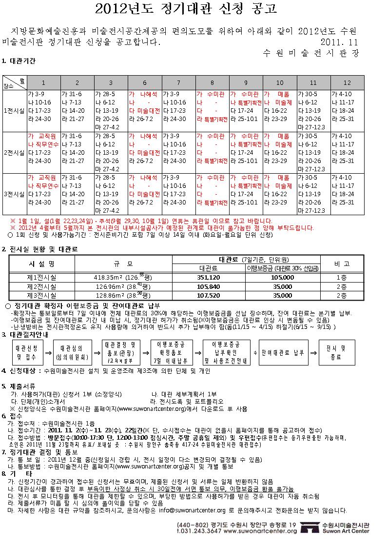 2012 수원미술전시관 정기대관 신청공고