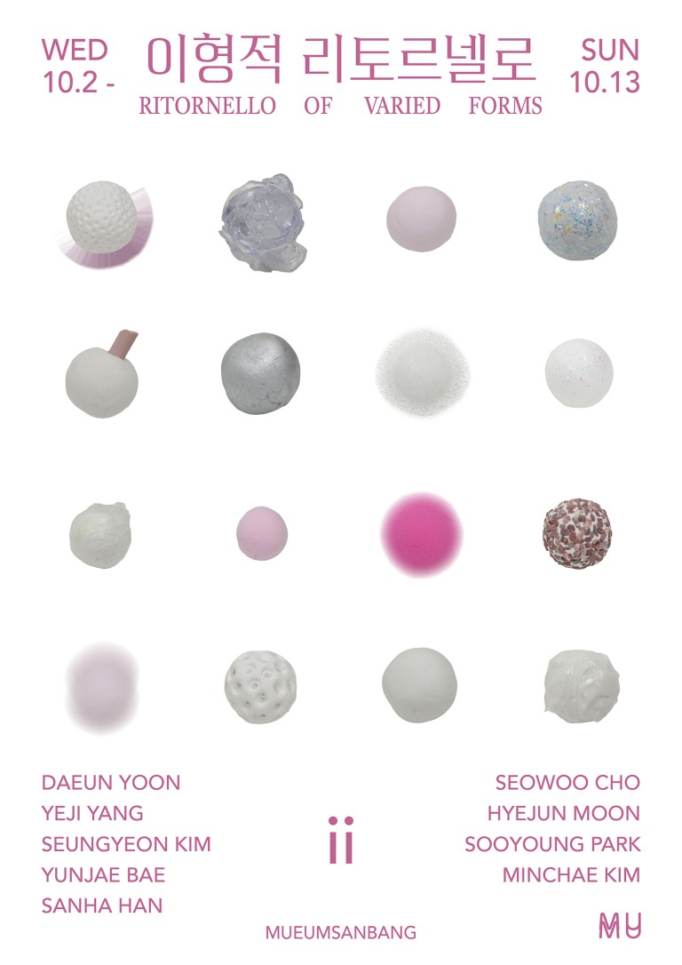 음악 미학에서 리토르넬로(ritornello)는 합주와 독주가 되풀이되는 반복구를 뜻한다. 동시에 변주를 수반한 채, 동일성 속에서 차이를 산출하는 복합적 구조를 가지며, 끊임없이 새로움을 생성하는 과정으로서 시간에 앞선 시간, 나아가 세계의 형성과 구축을 가능케 한다. 본 전시에 초대된 9인의 젊은 작가들은 각자의 조형적 언어로 이러한 개념에 주목하여 다채로운 매체를 통해 새로운 시공간의 리토르넬로를 창출하는 일에 천착하며, 입체, 회화, 공예, 영상 등으로 전이된 그들의 시각적 시간들은 선조적 배열 속에서 공간을 재구축하는 동시에 외부 세계로부터 이탈된 시간들이 전시 세계 내에서 상호작용하고 교차하는 양상을 드러내고자 한다.