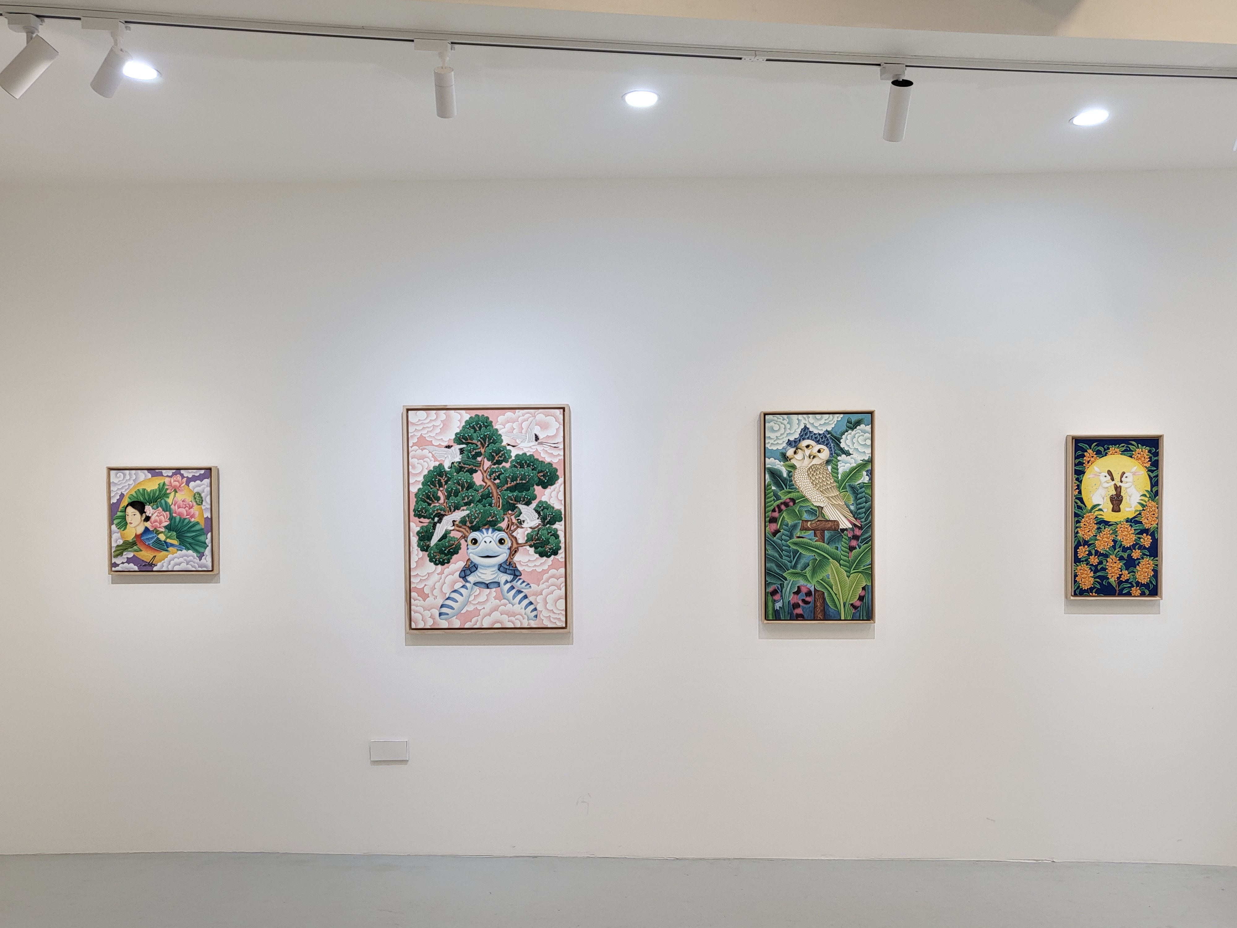 이러한 관심은 자연스럽게 오늘날에도 살아 숨 쉬는 한국 전통 속 상징과 이야기로 이어졌고, 그것이 내 작업의 출발점이 되었다. 과거 불확실하고 두려웠던 시대, 액운을 쫓기 위해 그려진 전통의 상상 동물들은 매서운 얼굴을 하고 있었지만, 내 그림 속에서는 신령스러운 힘을 간직한 채 친근한 모습으로 나를 지켜주는 친구로 다시 태어난다. 이들은 코로나 시기, 정신적으로 힘들었던 때에 만나, 내가 다시 시작할 수 있도록 지켜준 존재들이기에 이들을 ‘수호 친구’, ‘Guardians’ 라고 부른다.