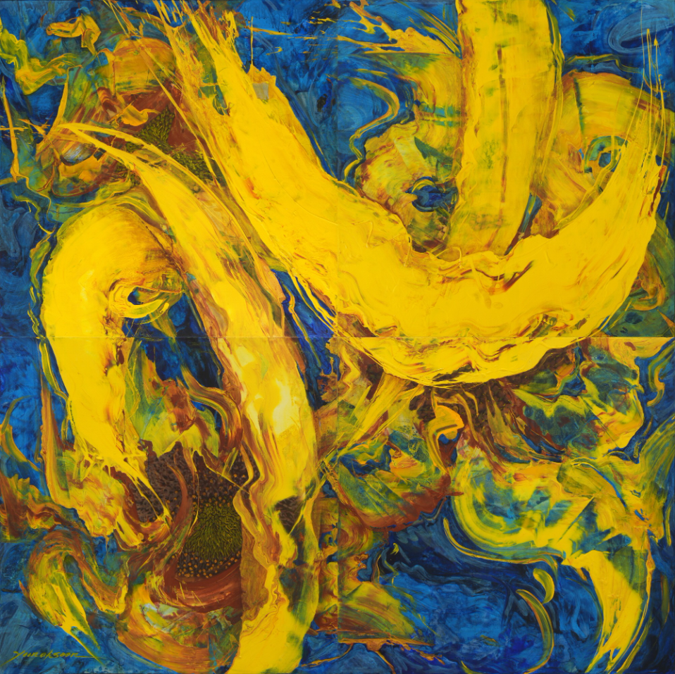 작가는 20여 년간 땅, 물, 불, 바람이라는 근원적인 대상을 탐구하고 표현하는 것이 사명이라 생각하며 그림을 그린다. 그러나 그에게 대상의 완결은 곧 작가로서 더 이상 그릴 것이 없다는 막막함으로 돌아온다. 그는 새로운 돌파구를 마련하기 위해 50대의 나이에 뉴욕으로 떠나는데, 예기치 못한 교통사고로 식물인간의 고비를 넘기게 되며 새로운 국면을 마주하게 된다. 그가 오랜 기간 탐구해 온 ‘생’이라는 대상은 그에게 도달해야 하는 근원적인 대상이었지만, 죽음의 고비를 넘기고 다시 마주한 ‘생’은 나라는 존재가 있기에 느낄 수 있는 내 속의 현현한 감정이었다. 이후 작가는 “내가 존재하지 않으면 무엇도 존재하지 않는다”는 깨달음으로, 화폭에 자신의 존재를 투영하는 대상을 등장시키며 말과 해바라기를 그리기 시작한다. 바람에 흩날리는 말갈기와 꽃잎은 그가 부딪히고 있는 세계이자 살아있음의 증명으로, 현재 그에게 무한한 영감이 되고 있다. 작가는 2008년부터 지금까지 그가 걸어온 여정에서 구축한 모티브와 제스처를 대상의 움직임 속에서 찾아내며 ‘생’이라는 주제를 다시금 실체화하고 있다.