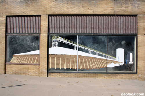 - 김지은_The Stadium of Corn_창문에 무늬목 시트지와 마스킹테이프_223×793cm_2010
