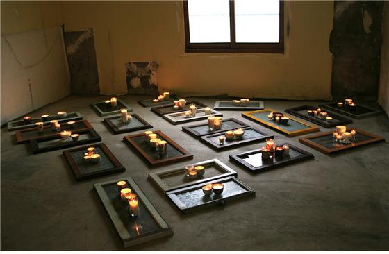 강정훈 ㅣ Home ㅣ 2015 ㅣ 철거촌 창문, 철거촌에 주워온 용기에 양초