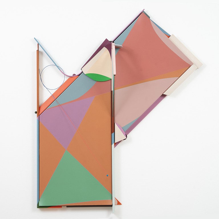 ‘잇은’의 작품은 네모난 캔버스의 틀을 벗어나 있다. 다양한 구조의 틀을 바탕으로 점, 선, 면과 같은 도형의 기본 요소들이 교차하여 배치되고 틀 밖으로 예민하게 뻗어있기도 하면서, 평면적, 입체적 요소들이 상응하며 새로운 조형미를 드러낸다. 또한 이번 전시에서 새롭게 선보이는 모빌은 가느다란 와이어에 매달린 오브제들이 미묘한 균형을 이루며 공간적, 시간적 요소를 동시에 경험하게 한다. 작품의 와이어와 우드볼을 따라 시선을 옮기다 보면, 눈길을 사로잡는 ‘잇은’ 특유의 섬세한 디테일을 발견하는 즐거움을 느낄 수 있다.