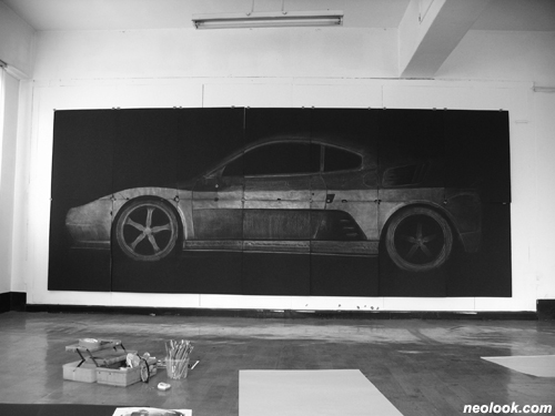 작품에 등장하는 '뜨거운 차'는 우리나라 최초의 슈퍼카인 '스피라'를 모델로 그것을 만들기 위해 노력했던 무조건 적인 도전 정신과 뜨거운 열정의 결과물을 다양한 각도에서 관찰하고 뜯어보았다. 위에서 내려다 본 모습은 과거 만화책에서 보았던 모습을 연상하게 하였으며 옆모습은 질주하기 위해 준비 중인 날렵한 모습으로 비추어 줬고 뒷모습은 어두운 밤 뒷산에서 눈을 부라 리고 있는 호랑이의 모습을 떠올리게 했다. 프로타주를 진행하면서 자동차의 구석구석의 모양과 생김새를 알 수 있었고 의미를 심기 위해서 노력한 흔적들을 느낄 수 있었다. '따뜻한 차'는 우리의 차라 할 수 있겠다. 남편과 아내 아이들과 어른들, 가족 구성원이 함께 공존하는 공간으로 수다를 떨고 맛있는 이야기와 좋은 경치를 이야기하고 같은 반 친구의 잘 잘못을 이야기하기도 하면서 집으로 식당으로 야외로 공연장으로 이동을 한다. 사소한 추억과 한 사람 한사람의 손때가 묻은 조용한 수다가 자동차 구석구석에 박혀져 있는 자동차, 추억을 간직한 가족 앨범과도 같이 차는 따뜻한 기억이 저장된 매체로 접근되어진다. 작품의 제작 과정도 자동차와 연관된 가족의 구성원들이 함께 참여하여 진행하였으며 작은 흔적들을 새겨 보았다. 즐겁기 위해 행복하기 위해 따뜻한 마스크를 쓰고 인간의 한계에 도전하는 열정을 느끼기 위해 뜨거운 마스크를 써본다. ■ 정명국