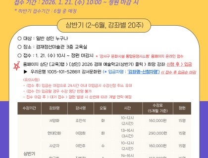 2026 겸재 예술학교 모집 안내