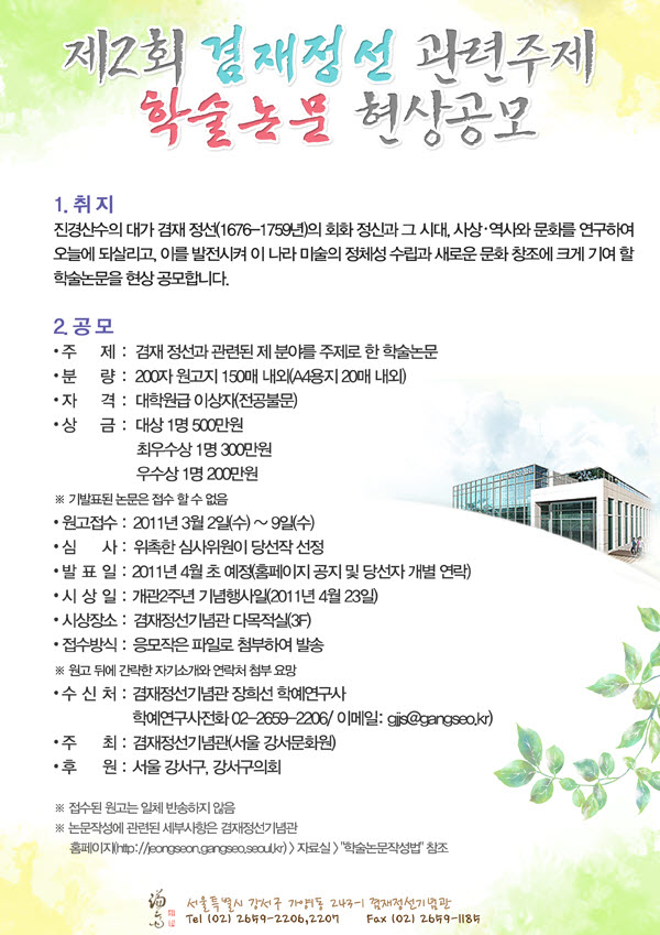 겸재정선기념관-제2회 겸재정선 관련주제 학술논문 현상공모