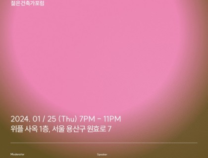 24.1.25- <<BEYOND REALISM : 메타버스 시대의 건축 오딧세이>>건축 메타버스 산업 스텔시 재단과 젊은 건축가포럼 단체가 위플(WIPLE) 사옥 1층에서 건축과 블록체인 기술의 융합을 도입한 메타버스에 관한 전시를 개최한다. 새로운 메타버스 시대의 문턱에서, 블록체인 기술이 건축 산업에 미치는 영향과 비전에 대한 심도 있는 토론을 하고자 합니다.-날짜 < 24.01.25 >시간 < 19:00 ~23:00 >위치 <…