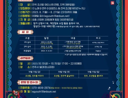 2023 갤러리71 작가공모 ■ 공모부문: 현대미술 전 장르■ 공모자격: 나이, 학력, 전공 무관■ 접수마감: 2023년 8월 15일(화) 18:00 도착분에 한함 (시간 엄수) ■ 전시기간: 10월 24일(화) ~ 2월 6일(화) (해당 기간 중 디피와 철수를 포함 8일 택)■ 제출서류: CV, 평론/작가노트, 작품 이미지 10매 이내(캡션 필수), 전시 희망 일자 3개, 희망 관> 모든 서류는 하나의 pdf로 통합 제출> 갤러리 1관, 2관 중 선택 기재 (전시장 …