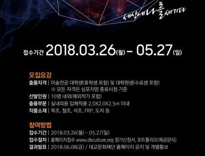 이번 "Art Audition 2016" (gw엔터테인먼트 주최) 국내 복합장르 및 개별 전문분야 예술대중화를 목표로 진행되는 차세대 아티스트 발굴 오디션 시스템입니다.이번 시즌.1은 국내 예술문화장르 중 “대중음악과 시각예술” 장르에 한하여 시작합니다.그리고, 추 후 시즌.2에서는 다양한 장르의 확장 및 아트 콜라보레이션을 선보일 예정입니다.대상>>대상 : 제한없음>>분야 : 시각예술(평면, 입체, 영상, 사진, 공예, 디자인 등) / 대중 음악(싱어송라이터)>>주최 : 지웍스…