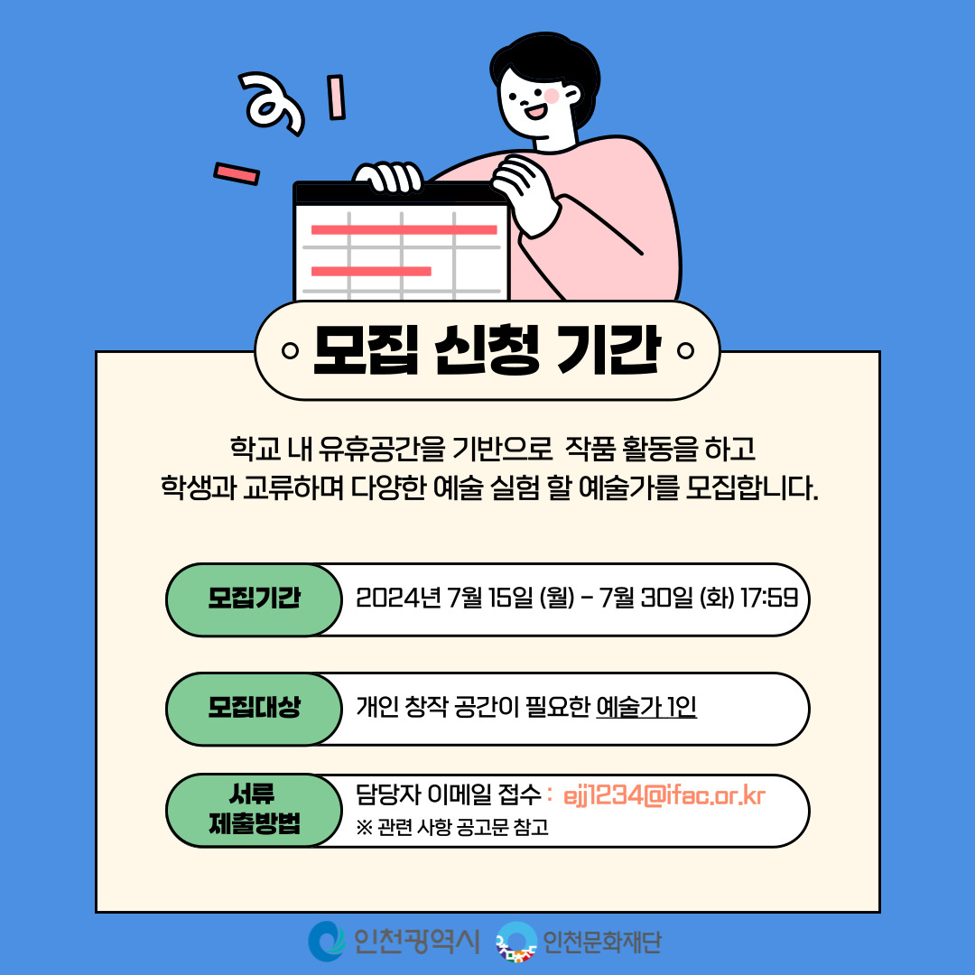 2024 인천문화재단 학교 유휴공간 레지던시 입주 예술가 모집 7.15-7.30