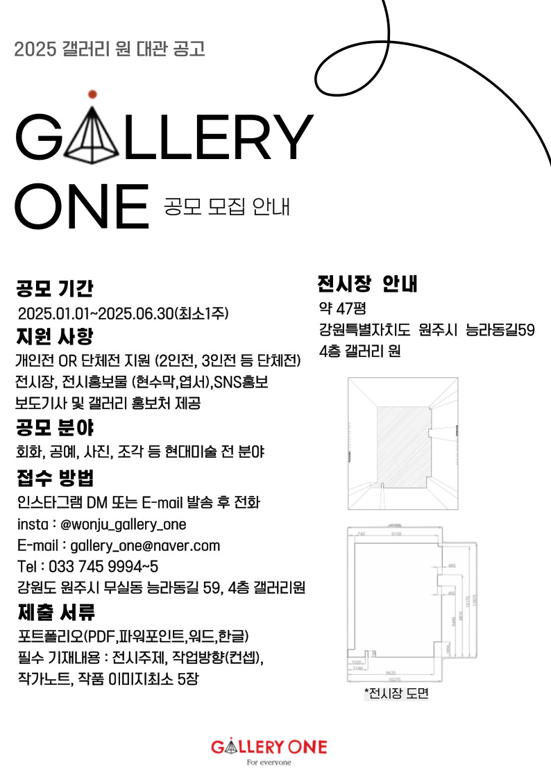 갤러리 원(GALLERY ONE)에서 2025년 상반기 공모전 모집을 진행 하오니