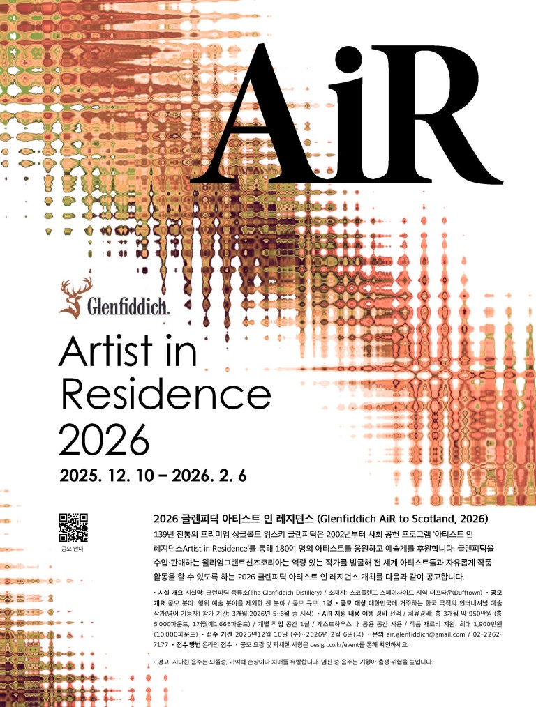 [공모전] Artist in Residence 2026 | 2026 글렌피딕 아티스트 인 레지던스 공모전의 주인공이 되어보세요