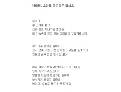 명언에 크큭을 붙여 보았다.jpg명언에 크큭을 붙여 보았다.jpg 한반도 최남단에서 대전풀싸롱 최북단까지의 거리(1천178㎞)를 뜻하는 '1178'은 '처음에 우리는 하나였어'란 가사로 시작하는 대전풀싸롱 2006년 발표곡이다.첫 평양 공연에 나서는 가수들의 선곡도 관심이 모아진다.백지영은 '대전유흥 사랑 안해', '총 맞은 것처럼', '그 여자', '내 귀에 캔디' 등의 히트곡 위주로 목록을 제출했다. 그중 '총 맞은 것처럼'은 한때 평양 대전유흥 대학생들의 애창곡 1위였다는 …