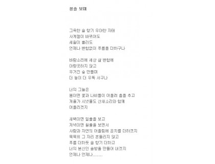 묵묵히 그 자리 흔들리지 않고푸름 더하듯 솔 향기 더하고너의 분신인 솔방울 만들어 내겠지 언제나 언제나........ 화상채팅 추천 성인 방송어플