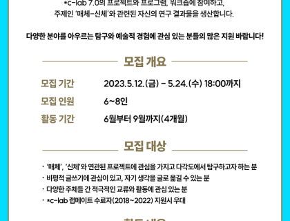 몰입형 예술 전시 ‘빛의 시어터’ 및 ‘빛의 벙커’에서 문화 예술을 사랑하고 참신한 아이디어로 몰입형 예술 전시를 알리고 싶은 ‘빛의 벙커&빛의 시어터 대학생 기자단’을 모집합니다!1. 모집 안내가. 지원 자격1) 대학생, 기타(휴학생 및 졸업예정자 가능)2) 문화예술, 전시에 관심이 많으신 분3) 사진촬영, 글쓰기, 영상 기획 및 편집을 좋아하시고 관련 경험이 있으신 분4) 자신만의 SNS, 블로그, 유튜브 계정을 운영해본 적 있으신 분5) 성실하게 기자단 활동에 참여…