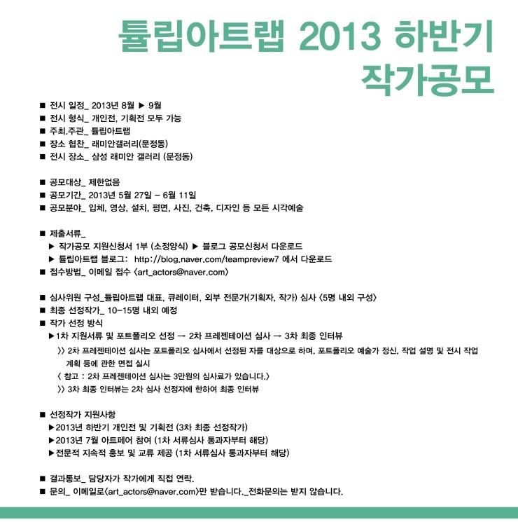 튤립아트랩 2013 하반기 작가공모