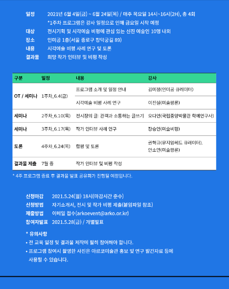 시각예술 비평, 전시 기획 등에 관심있는 분들의 많은 관심과 지원 부탁 드리며,