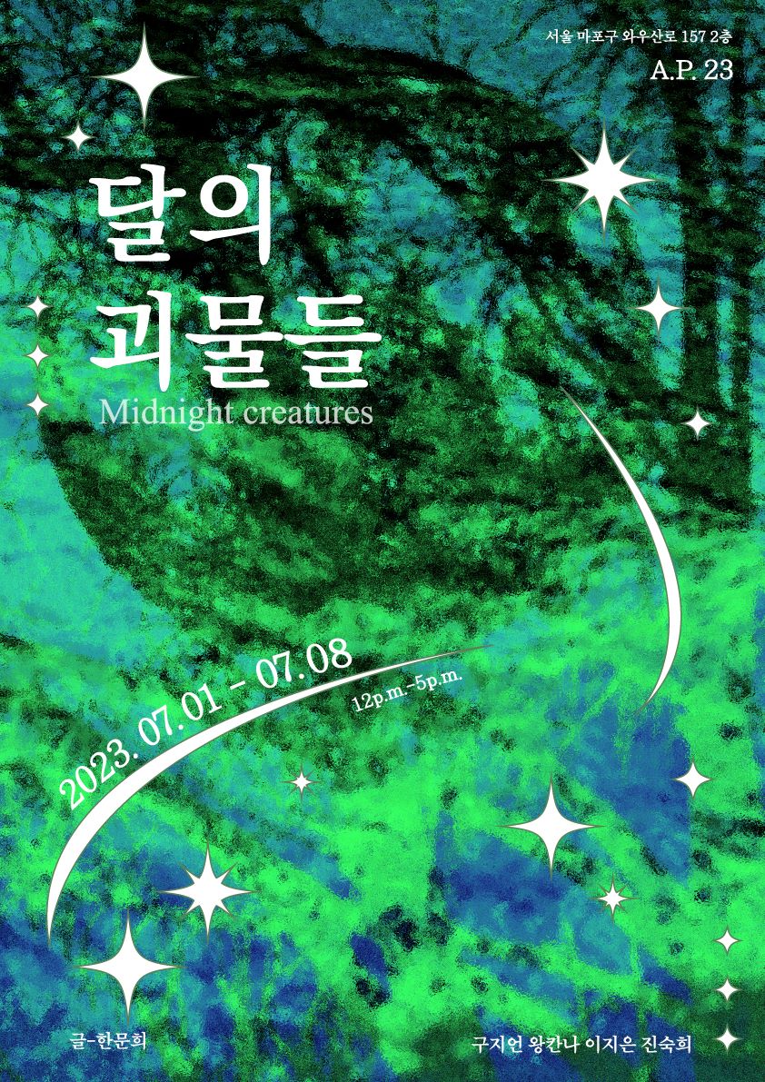 광대한 응달을 비추는 달은 밤 위로 흐릿한 그림자를 겹쳐내고 그 틈 사이에서 괴물은 움직인다. ‘괴상하게 생긴 물체’라니, 그러나 여기 있는 이들은 그 말을 기껍게 받아들인다. 단어로는 설명되지 않는 존재들-신, 괴물, 크리쳐(creature) 따위의 것-은 무어라 이름을 붙여 보아도 온전히 이해될 수 없으리라. 말은 본디 어긋나고 와전되기 마련이니 이 밤의 이야기는 오롯이 우리의 유희이다. 구전과 상상이 뒤섞이고 그 혼란의 기록이 그림과 말로 발화되는 순간, 이것은 실제가 아니지만 거짓도 아니게 된다.