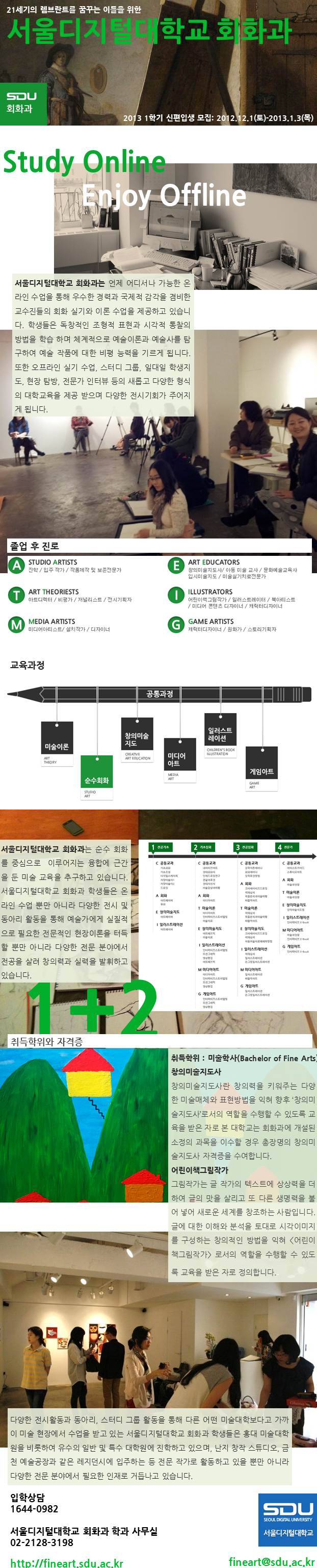 [서울디지털대학교회화과]2013 신편입생 모집 페이지 정보 작성자 회화과 조회 6,432회 작성일 12-12-12 16:20 본문 추천 0 관련링크 http://finearts.sdu.ac.kr 2169회 연결 http://sdu.ac.kr 3489회 연결 목록 이전글 [고양문화재단] 고양 명칭 사용 600년 기념 "아람미술관 전시기획 공모전" 12.12.21 다음글 [수원미술전시관]2013대관전시 신청 공고 12.11.03 회화과님의 알림마당 관련글 알림마당 더보기 H 인기글 [서울디지털대학교 회화과] 2012 신/편입생 모집 12-25