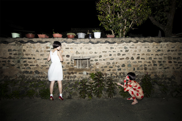 우리는 세상을 살아가면서 외부세계와의 충돌과 갈등을 겪기도 하지만 본인 스스로의 내면세계에 존재하는 또 다른 자아를 발견하면서 정신적인 방황을 하기도 한다. 즉 현대사회를 살아가는 상당수의 사람들은 내면적으로 이중적인 자아를 형성하고 있다는 이야기이다. 그러므로 특정한 개인이 외형적으로 드러내는 성격이나 행동은 내면에 존재하는 여러 자아가 충동하여 형성된 결과일 수도 있다. 윤아미는 자신을 비롯한 동시대인들의 이와 같은 내면적인 방황과 갈등을 표상하는 사진작업을 한다. 다시 말해서 작가의 정신세계는 겉으로 드러나는 자아 외에도 또 다른 모습의 자아가 존재하고 있는 것이다. 작가가 과거에 발표한 At night 1'시리즈에서는 붉은 점박이 무늬가 몸에 새겨져 있는 또 다른 자아가 남들은 쉬고 있는 밤 시간에 폐허에서 방황하고 갈등하고 있는 모습을 상징적으로 표현했다. 그 연장선상에서 작업한 At night 2'시리즈에서는 현실에 존재하는 자아와 내면세계에 존재하는 돌연변이적인 자아가 조우한 상황에서 발생한 사건을 보여주고 있다.