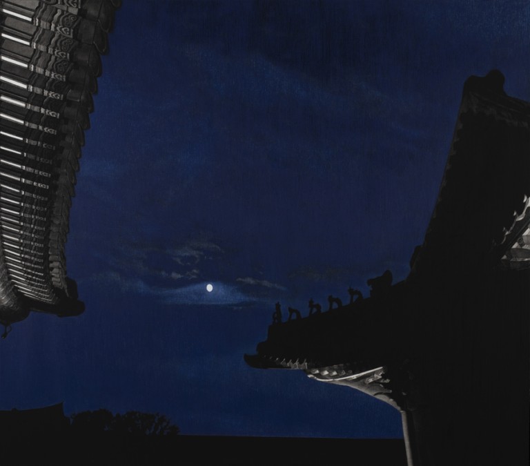 작가는 회화와 사진의 경계에서 실재하는 풍경을 내면의 탐색을 통해 재구성한다. 과거 미시간, 뉴욕, 베이징, 홍콩, 마카오 등의 공간을 화폭으로 담아오면서 건축물이 놓인 풍광(Atmosphere)과 온도를 그려내었고 점차적으로 건축을 주인공으로 삼았다면, 이번 전시에서는 생경한 소재에 집중하였다. 작가는 전통건축수리기술진흥재단에서 일을 하게 되는 과정에서 국보 제1호 숭례문 목부재를 비롯한 다양한 한국전통건축을 접하게 된다. 이국에서 시작한 건축과 공간에 대한 시선은 한국전통건축에서 검은 색조의 방식(Manière-noir)으로 재조명한다.