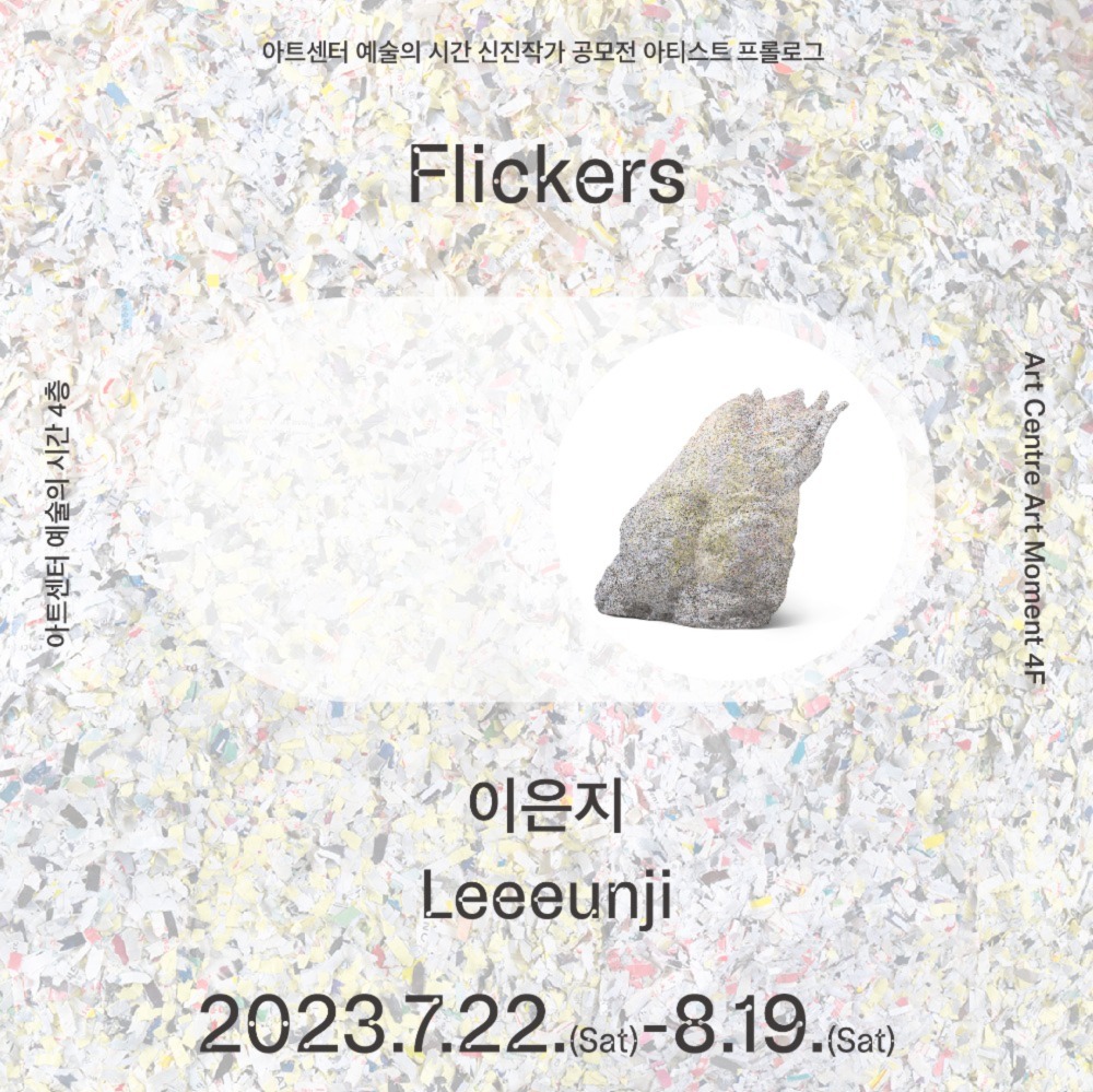 작성자 106 조회 8,587회 작성일 23-07-13 14:20아트센터 예술의 시간은 오는 2023년 7월 22일부터 8월 19일까지 이은지의 개인전 《Flickers》을 개최한다. 이은지는 아트센터 예술의 시간 신진작가 공모 ‘아티스트 프롤로그 2023’의 선정작가 4인 중 하나로, 《Flickers》는 이번 공모 선정 릴레이 개인전 중 3번째 전시이다. 이번 전시는 빛이 깜박이듯, 희미하고 불분명한 허상을 주제로 대규모의 바위 풍경을 선보인다. 새롭게 선보이는 신작에서 이은지는 다른 재료들에 비해 상대적으로 유연하고 연약한 ‘종이’로 정반대의 단단하고 강인한 ‘바위’를 만든다. 이러한 행위는 ‘종이’ 매체에 관한 연구이자, 작가로서 창작행위의 지속 가능성에 관한 믿음으로 이어진다. 파쇄한 종잇조각이 거대한 바위 덩어리가 될 때, 종이―유약함, 바위―견고함으로 단정 지을 수 없게 된다. 작가는 종이 바위에 벌어진 틈이라든가, 전시공간의 건축적 요소들을 통해 관객의 시선 속에 여백을 의도적으로 노출하여 규정하는 행위들을 지연시킨다. 작가에게 틈(여백)에서 타오르는 불씨는 우리를 움직이게 하는 생성의 힘이자, 작가에게는 예술을 지속하게 하는 가능성의 힘이다.