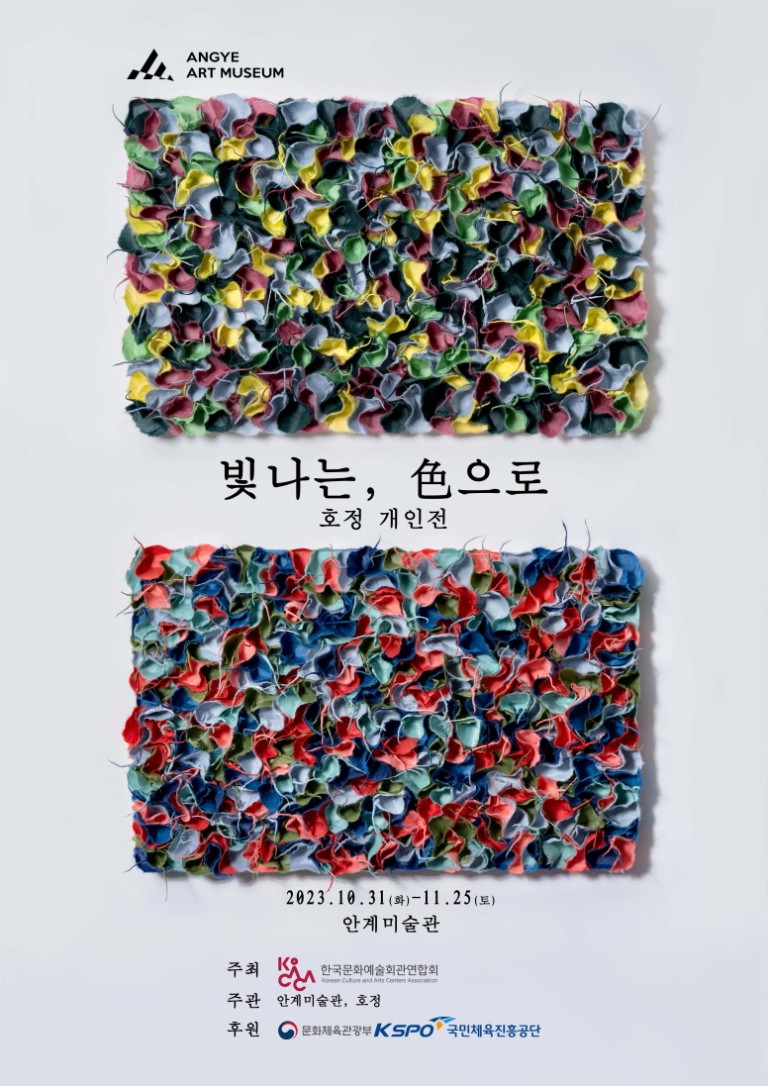 *한국문화예술회관연합회(KoCACA)가 주최하는 「전시공간 활성화 지원 사업」 은 수도권에 집중된 전시프로그램을 지역으로 확산하여 지역 유휴 전시공간의 가동률을 높이고, 지역민의 전시관람 기회를 통해 시각예술분야의 문화 향유 기회를 확대하고자 진행됩니다. 안계미술관에서 진행되는 청년 작가 호정의 <빛나는, 色으로>는 문화체육관광부와 국민체육진흥공단의 지원을 받아 시행합니다.