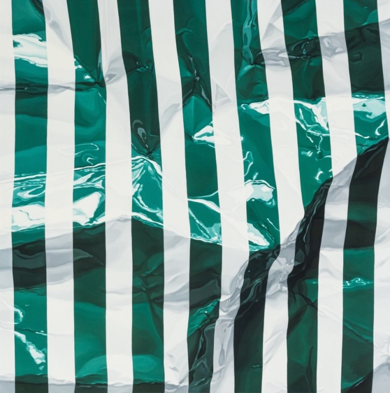 당신이 보는 것이 보는 것이다, 라는 프랭크 스텔라의 말에서와 같은 동어반복이다. 즉물성이다. 당신이 지금 보고 있는 것은 캔버스고, 틀이고, 그 위에 별 의미 없이 그어놓은 선일 뿐이다. 이러한 사실의 인식으로 작가의 그림을 보면, 작가의 그림은 다만 그림이다. 구겨진 종이일 뿐이다. 사실은 구겨진 종이처럼 보이는 그림일 뿐이다. 그리고 무엇보다도 실제로는 어떤 최소한의 구김조차도 없는 편평한 캔버스일 뿐이다. 이 지극한 평면성의 인식이, 사실은 환영 뒤에 숨겨놓은 평면성의 뒤늦은 알아차림이 클레멘테 그린버그를 재소환하게 만든다. 여기서 다시, 사진처럼 보인다는 것은 환영이다. 그러므로 환영은 다만 철저하게 표면에서 일어나는 일이다. 그리고 평면(성)은 그 표면 뒤에 은폐되어져 있다. 그래서 처음엔 표면에 있는 환영이 보이고, 그리고 뒤늦게 평면(성)이 보인다(인식된다). 감각현상이 먼저 오고, 실재의 인식이 뒤늦게 온다. 감각이 인식을 부르는 것인 만큼, 감각이 없으면 인식도 없다.