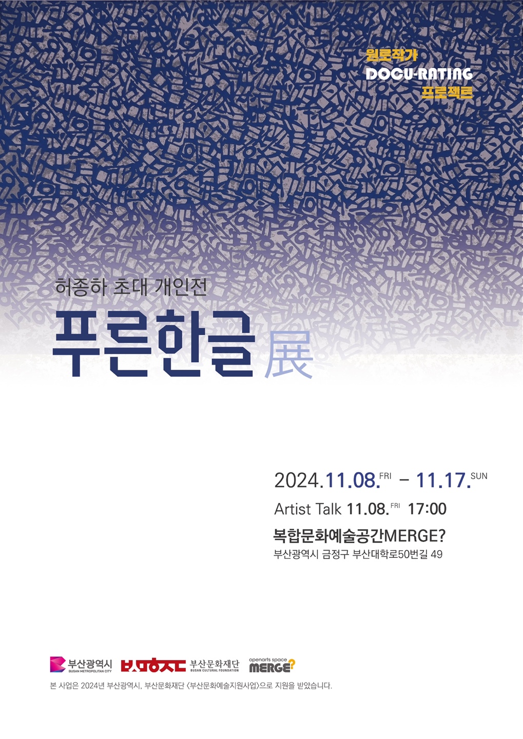 작성자 오픈아츠스페이스머지 조회 8,438회 작성일 24-11-01 12:43푸른한글 展